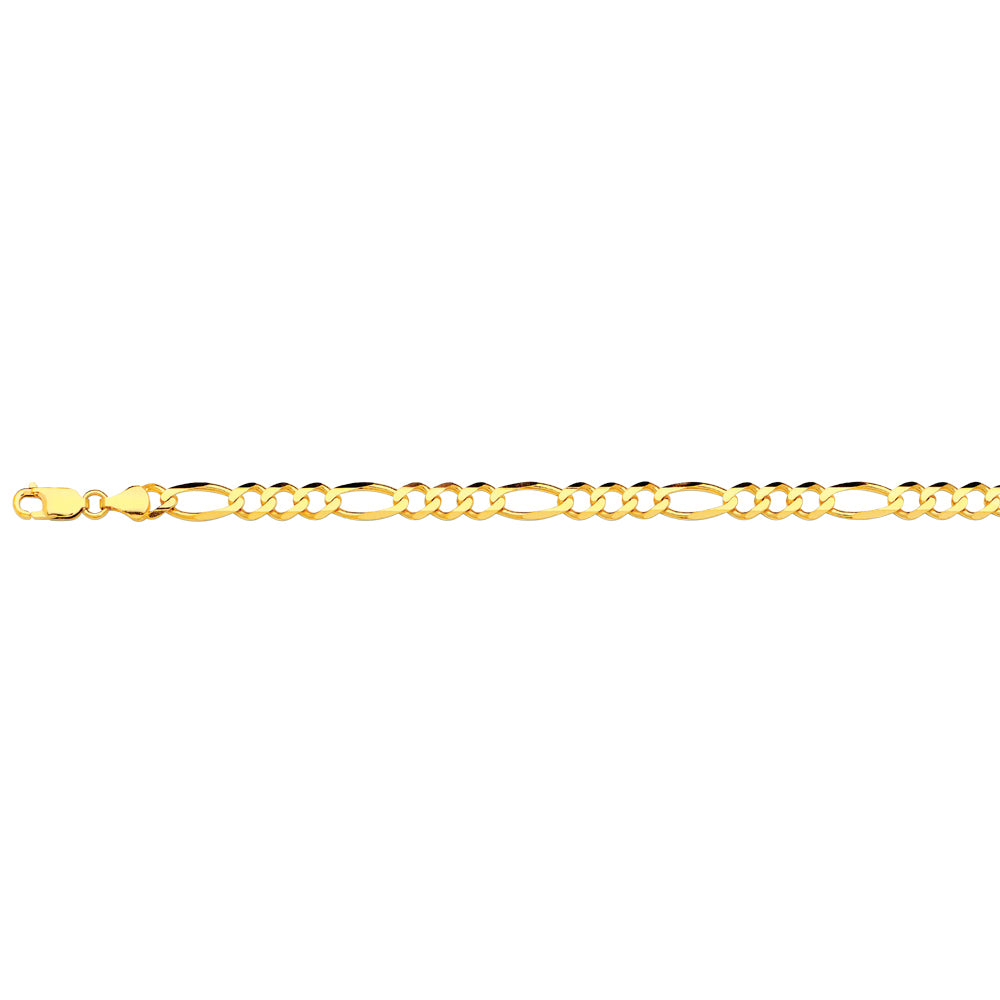 14K 6.5MM YELLOW GOLD SOLID FIGARO 8.5" CHAIN BRACELET (AVAILABLE IN LENGTHS 7" - 30")