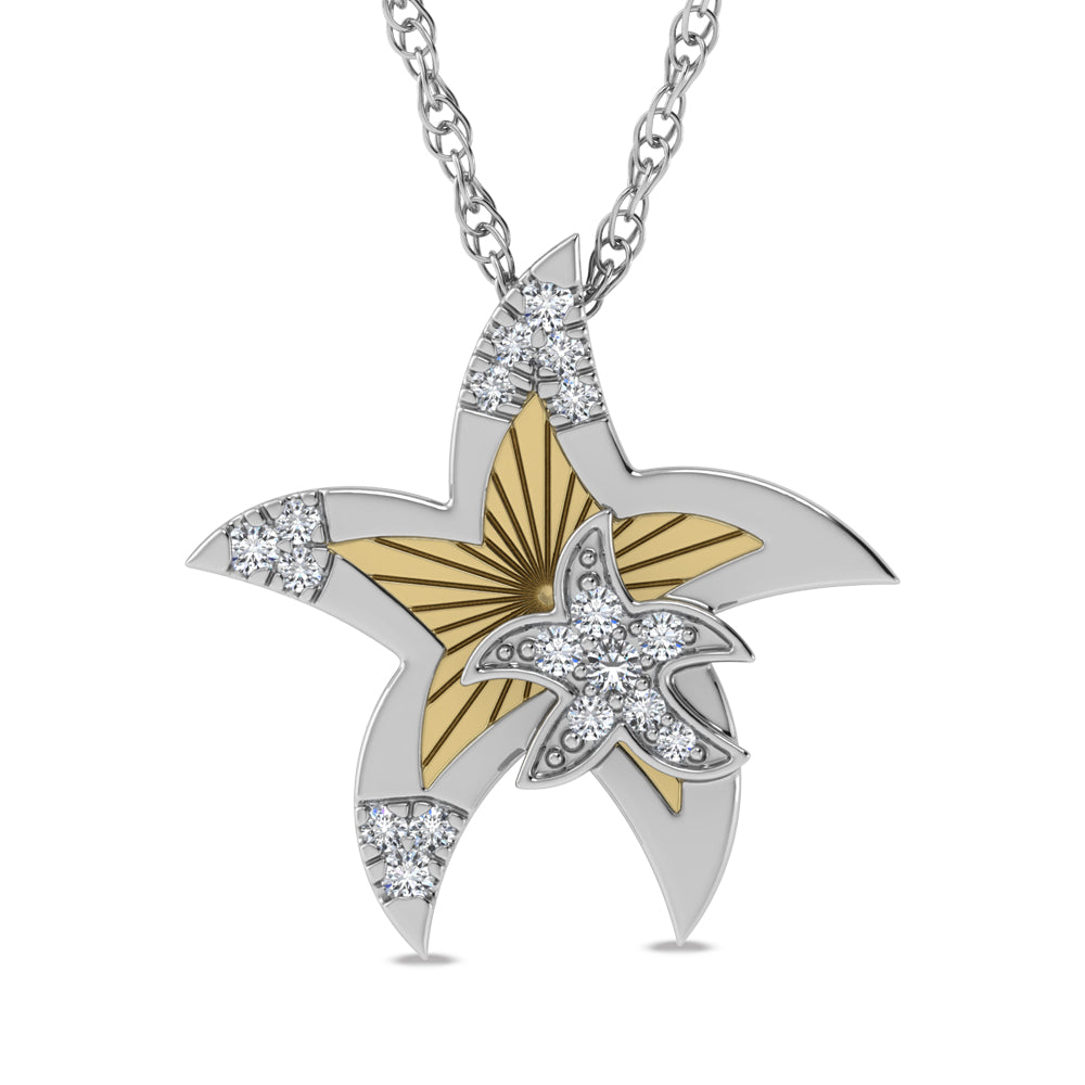 14K Two Tone Diamond 1/10 Ct.Tw. Starfish Pendant