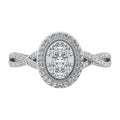 14K White Gold 1/2 Ct.Tw. Diamond Round and Baguette Oval Shape Engagement Ring