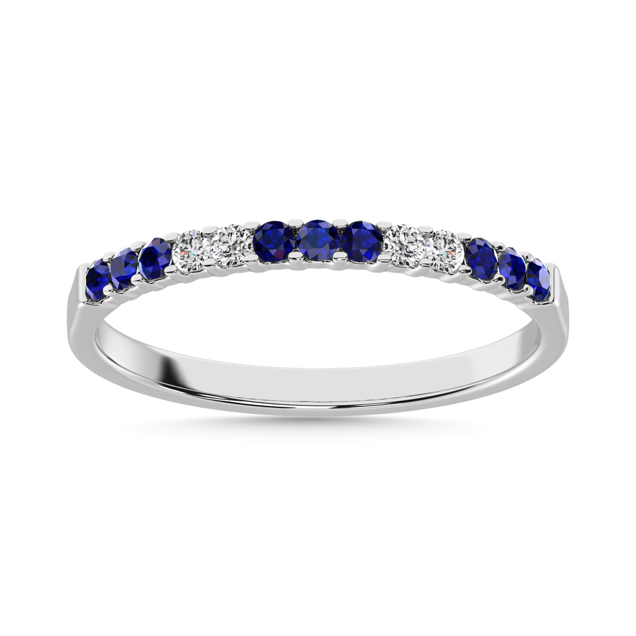 14K White Gold 1/4 Ct.tw Alternate 9 Blue Sapphire & 4 Diamond Machine Band