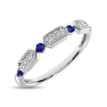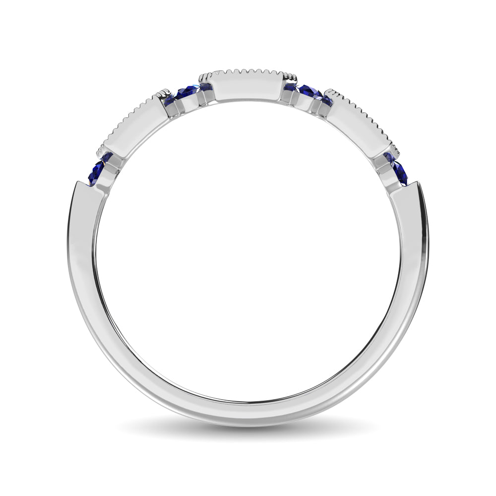 14K White Gold Alternate Diamond 1/5 Ctw and Blue Saphire Ring