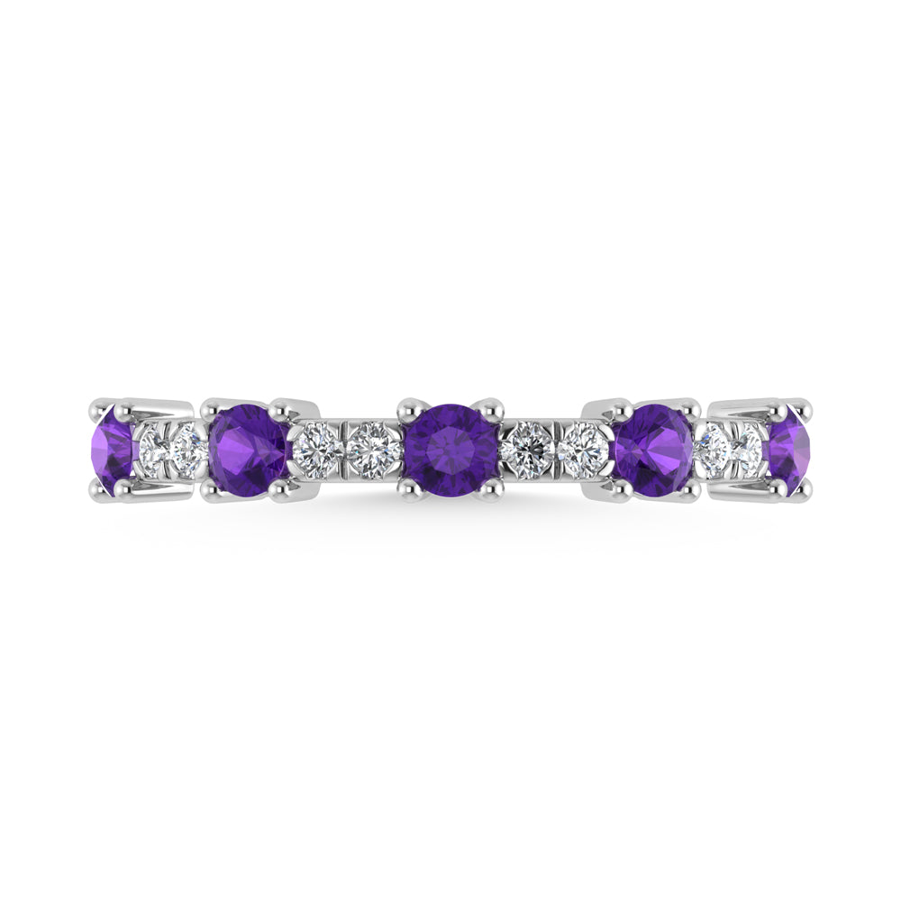 14K White Gold Diamond 1/2 Ct. Tw. Alternate Diamond and Amythyst Stackable Band
