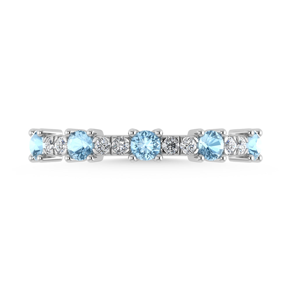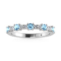 14K White Gold Diamond 3/8 Ct. Tw. Alternate Diamond and Aquamarine Stackable Band