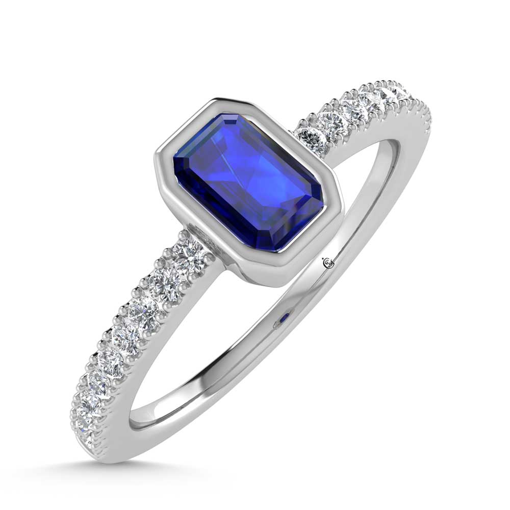 14K White Gold Diamond 3/8 Ct.Tw. And Blue Sapphire Fashion Ring