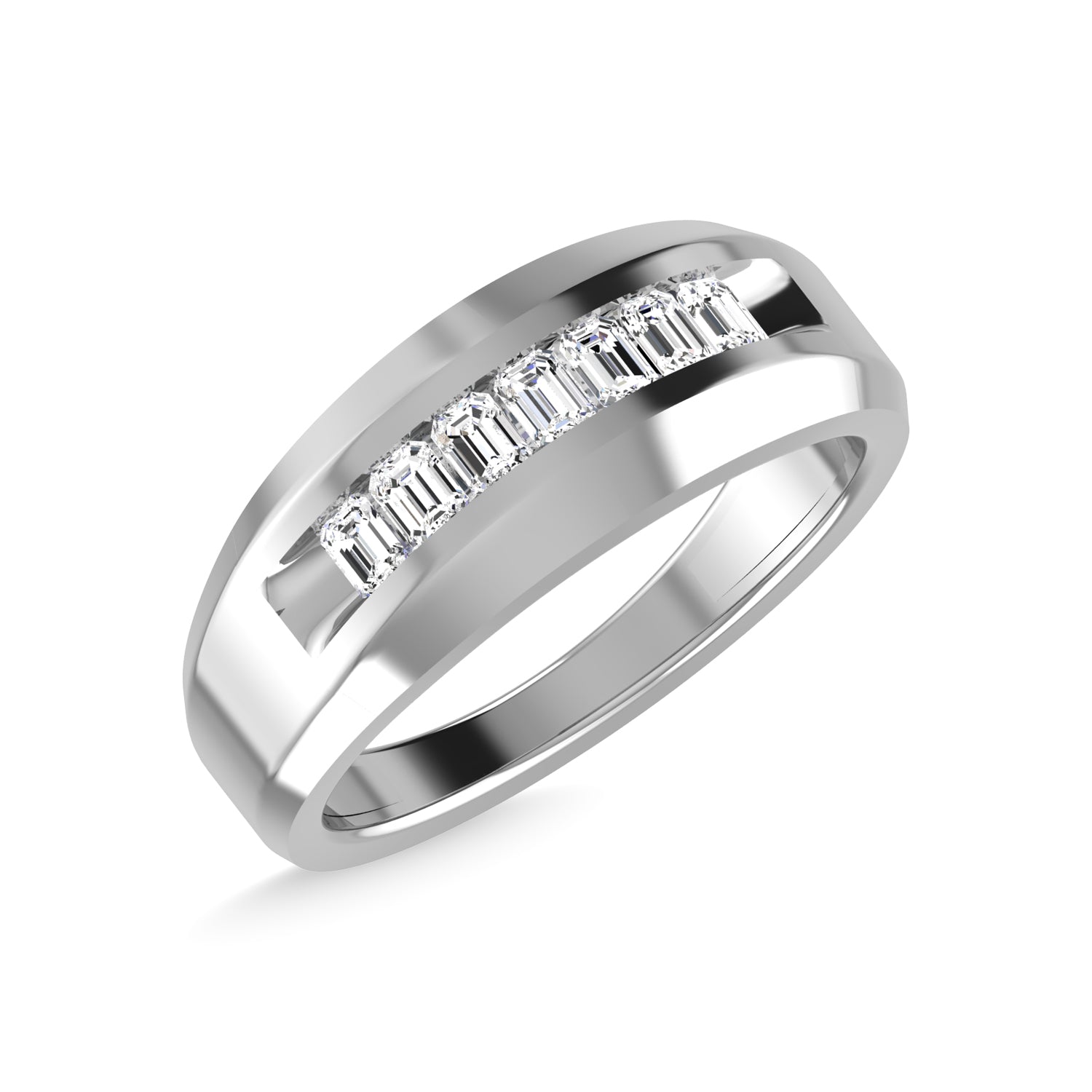 14K White Gold Diamond 5/8 Ct.Tw. Mens Wedding Band