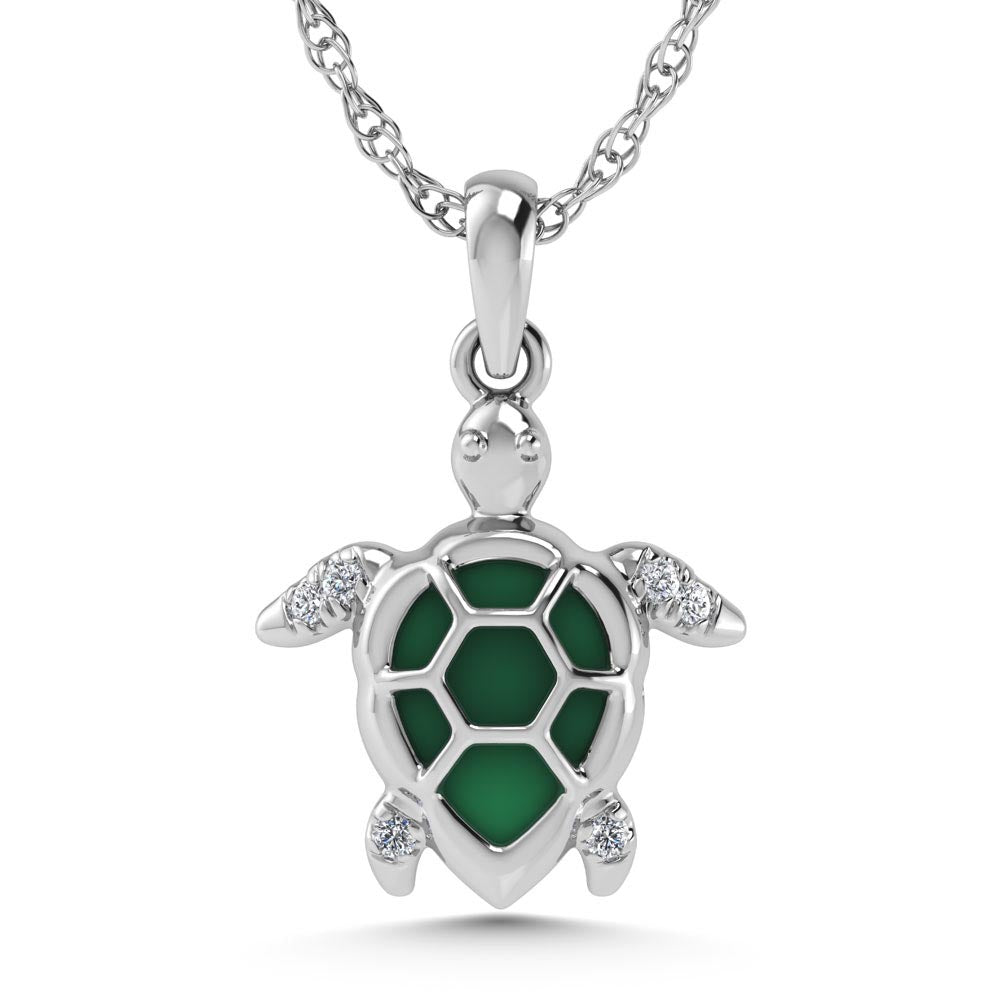 14K White Gold Diamond 7/8 Ct.Tw. Mother of Pearl Tortoise Pendant