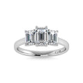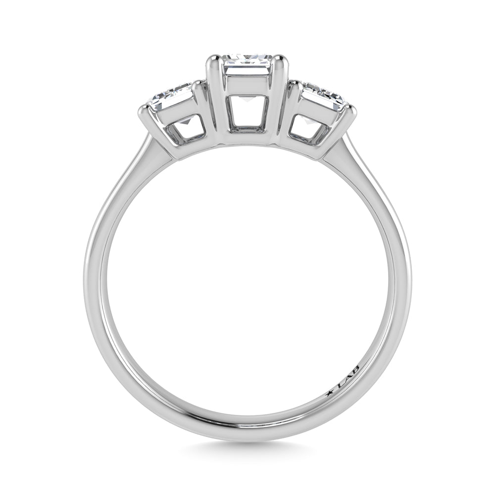 14K White Gold Lab Grown Diamond 1 1/2 Ct.Tw. Plain Shank Emerald Shape Three Stone Engagement Ring