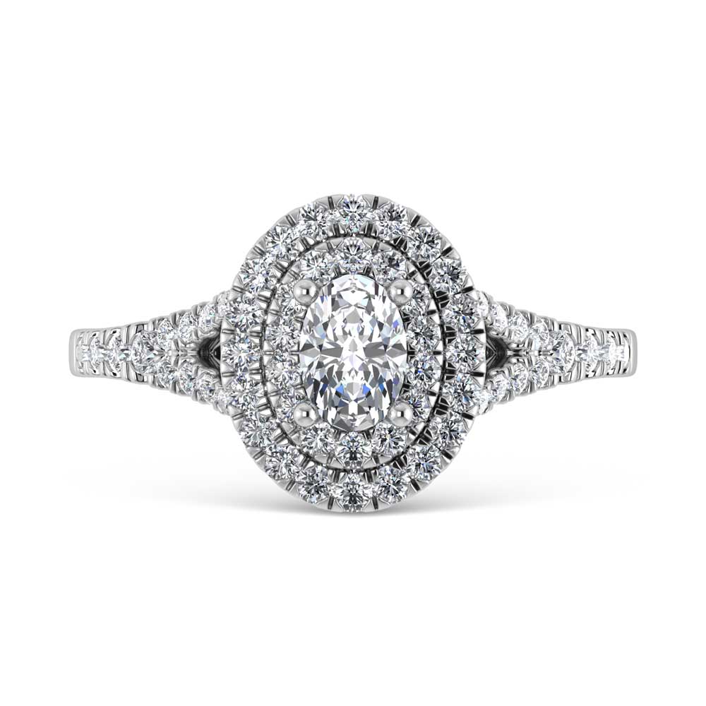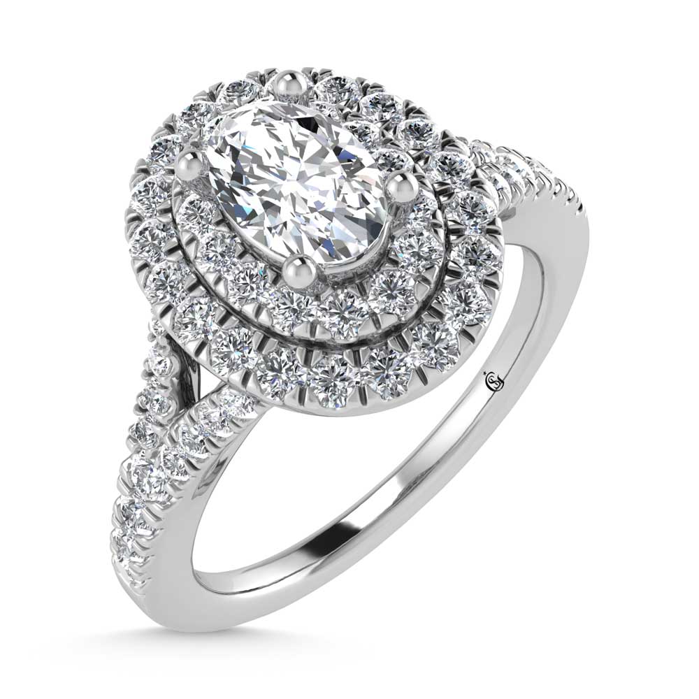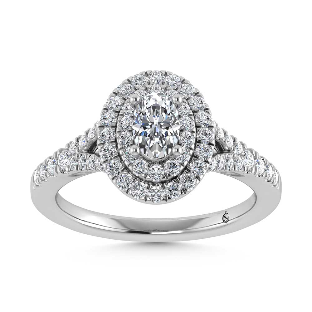 14K White Gold Lab Grown Diamond 1 ct.tw. Oval Shape Halo Engagement Ring (1/2 ctw Center)