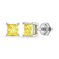 14K White Gold Lab Grown Yellow Diamond 1 1/2 Ct.Tw. Princess Stud Earrings
