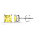 14K White Gold Lab Grown Yellow Diamond 1/2 Ct.Tw. Princess Stud Earrings