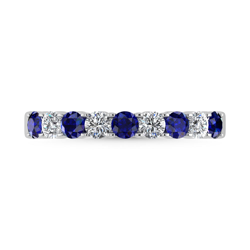 14K White Gold Machine Set Alternate Blue Sapphire and Diamond 7/8 Ct.Tw. Band