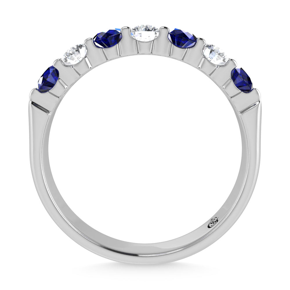 14K White Gold Machine Set Alternate Blue sapphire and Diamond 7/8 Ct.Tw. Band