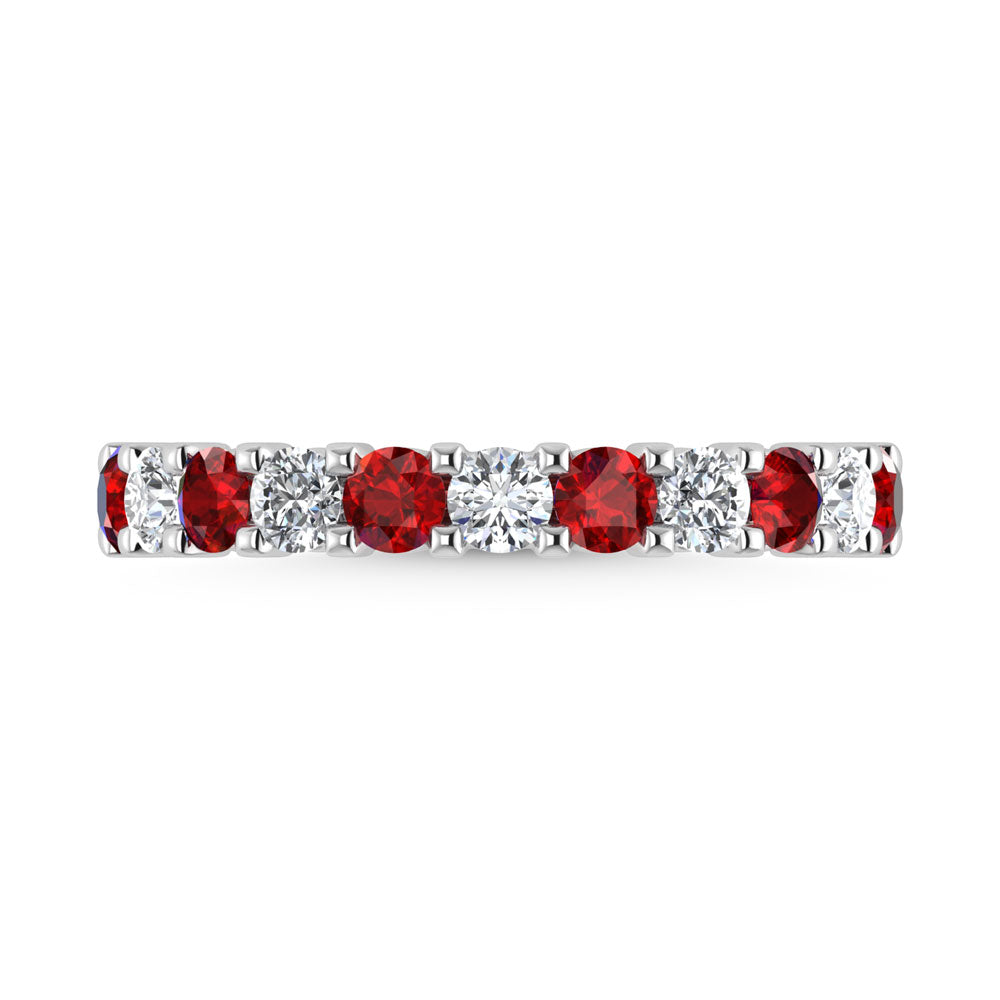 14K White Gold Machine Set Alternate Ruby and Diamond 7/8 Ct.Tw. Band