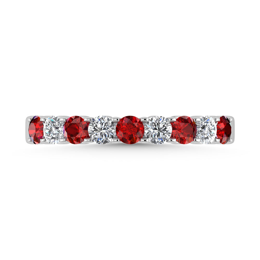 14K White Gold Machine Set Alternate Ruby and Diamond 7/8 Ct.Tw. Band