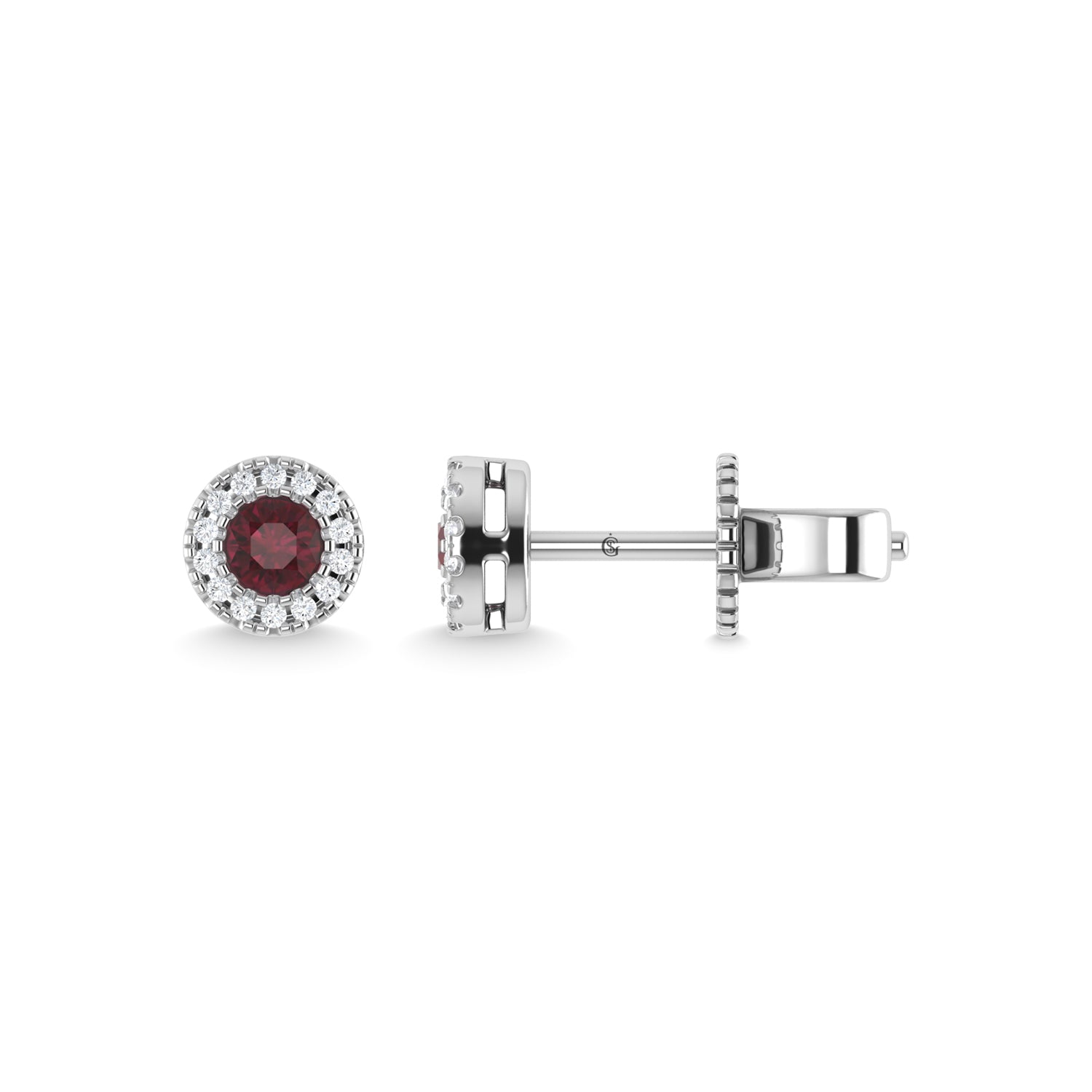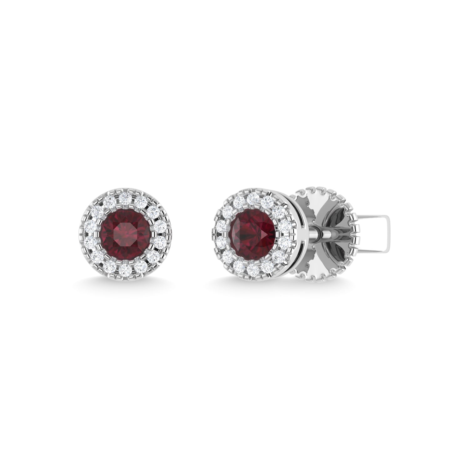 14K White Gold Ruby and Diamond 1/5 Ct.Tw. Fashion Earrings