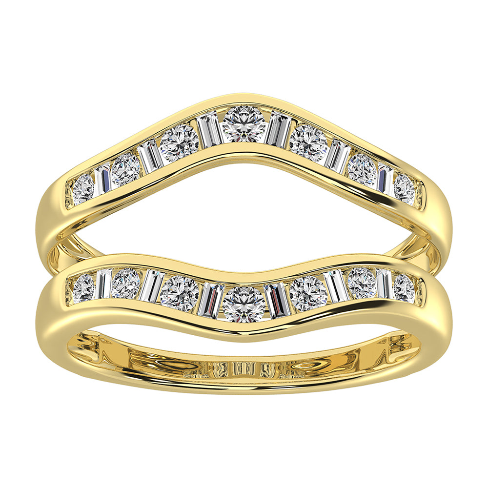 14K Yellow Gold 1/2 Ct.Tw. Diamond Round and Baguette Guard Ring