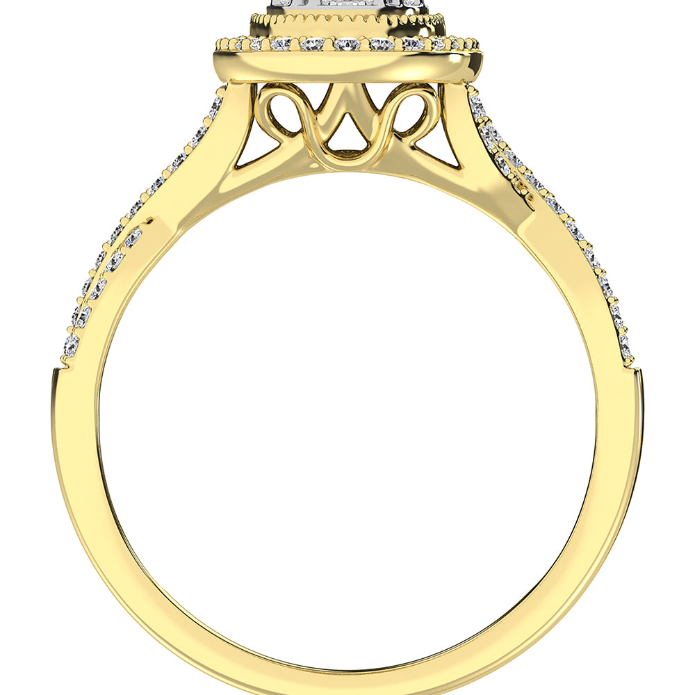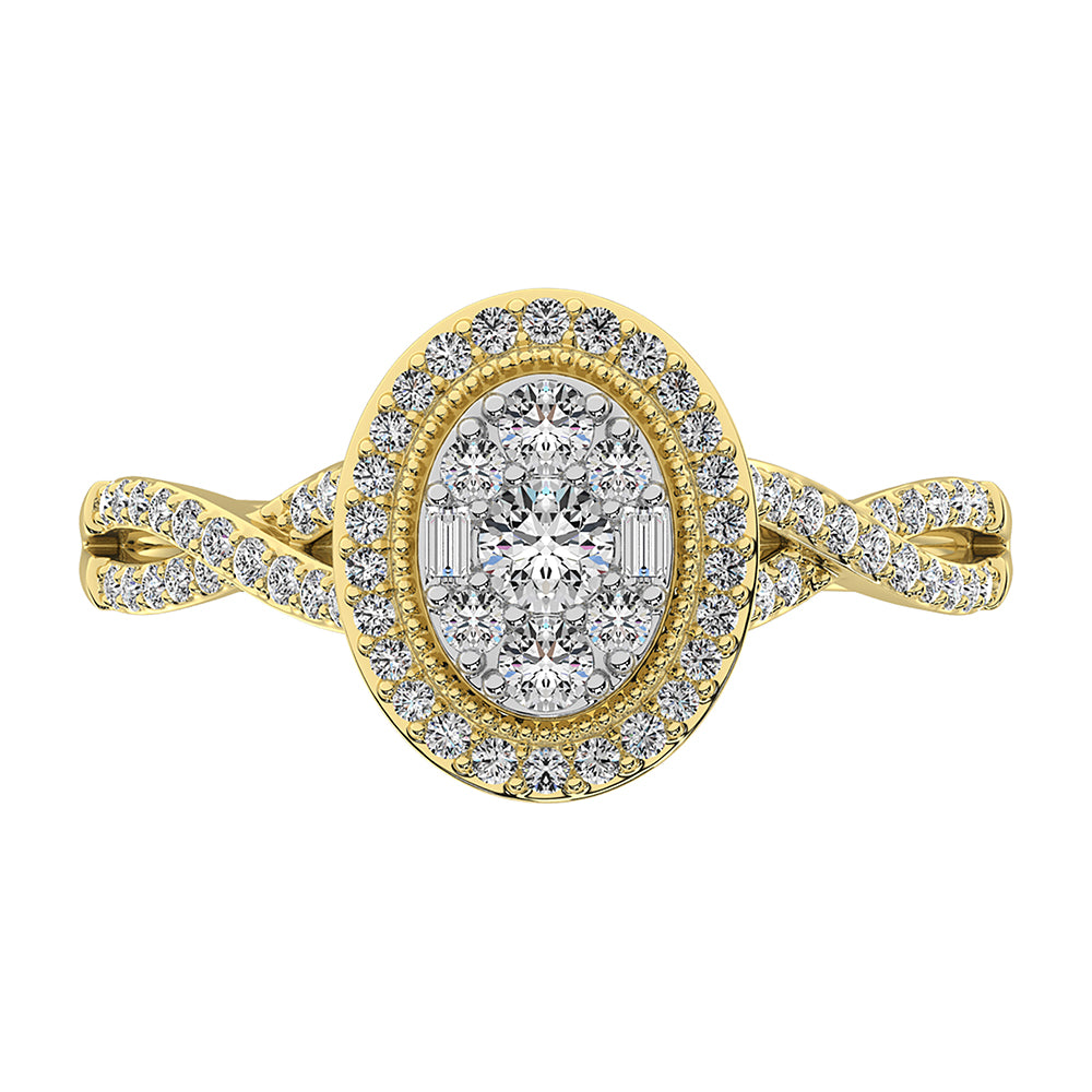 14K Yellow Gold 1/2 Ct.Tw. Diamond Round and Baguette Oval Shape Engagement Ring