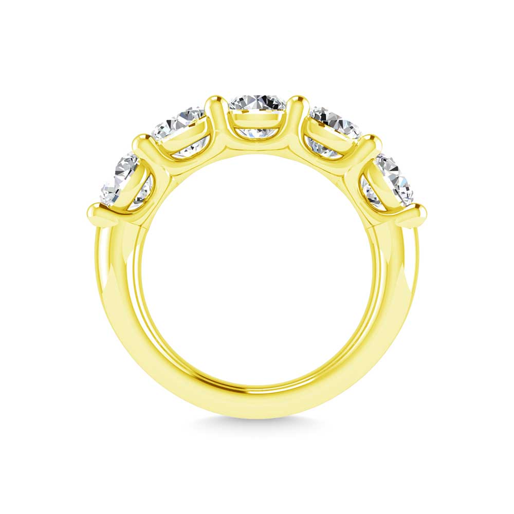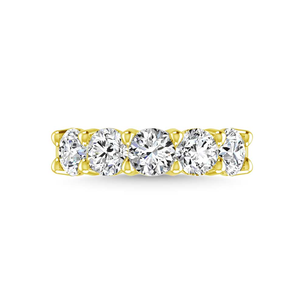 14K Yellow Gold 1 CT Tw. Round Shape Lab Grown Diamond Five Stone Anniversary Band