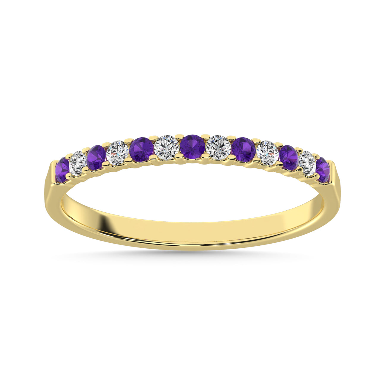14K Yellow Gold alternate Diamond 1/4 Ct.Tw. And Amethyst Machine Band