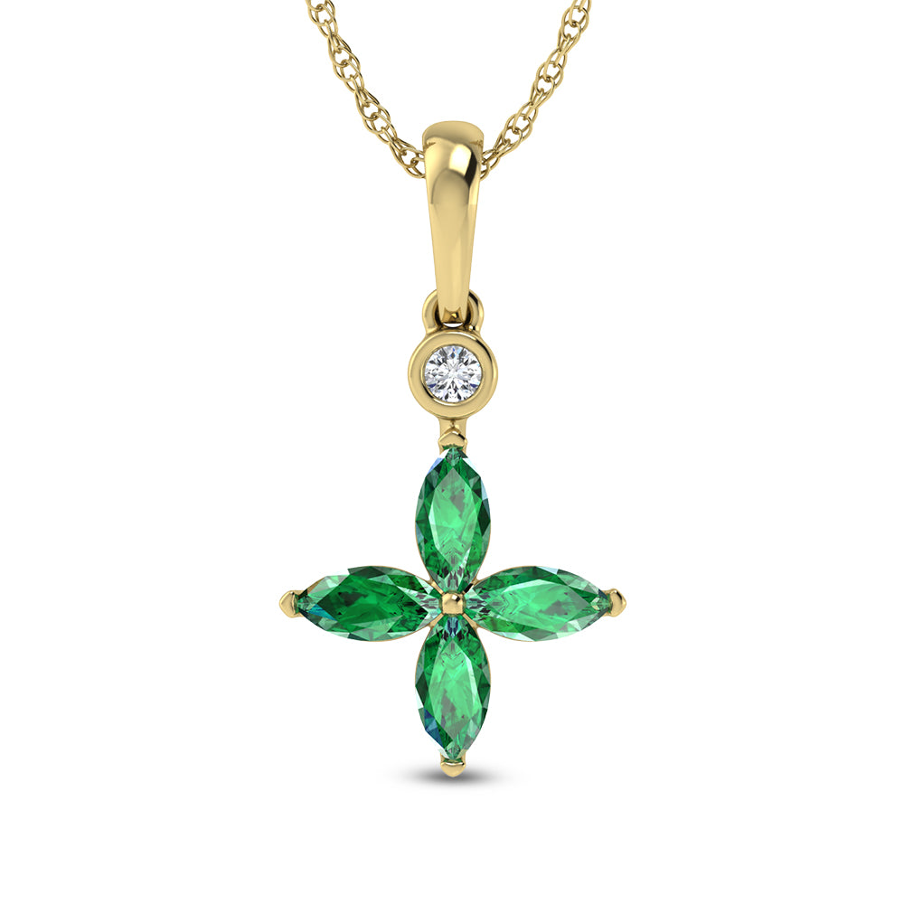 14K Yellow Gold Diamond 1 Ct.Tw. & Emerald Fashion Pendant