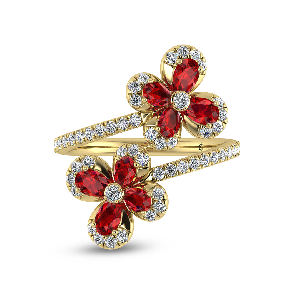 14K Yellow Gold Diamond 2 1/4 Ct.Tw. & Ruby Fashion Ring