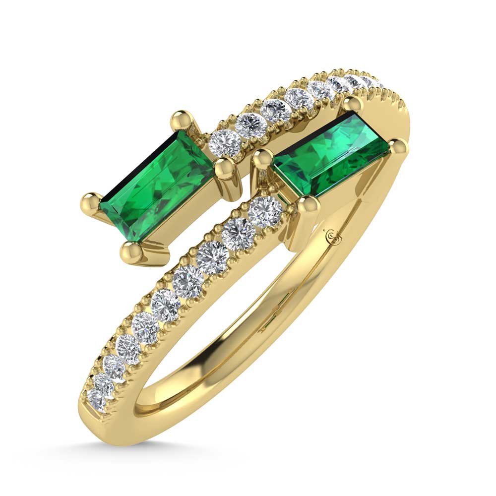 14K Yellow Gold Diamond 3/8 Ct.Tw. And Emerald Fashion Ring