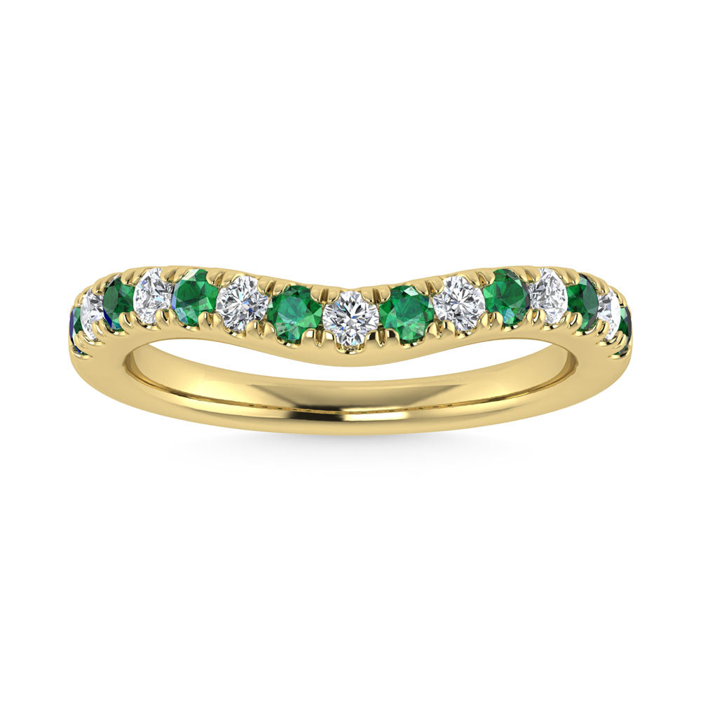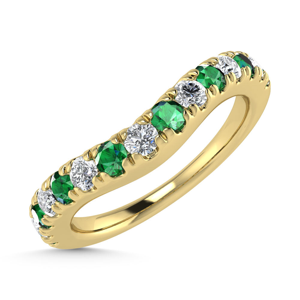 14K Yellow Gold Emerald and Diamond 1/2 Ct.Tw. Curve Band