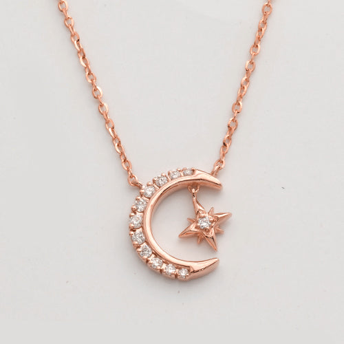 14KR 0.15CTW DIAMOND NECKLACE - CRESCEN MOON