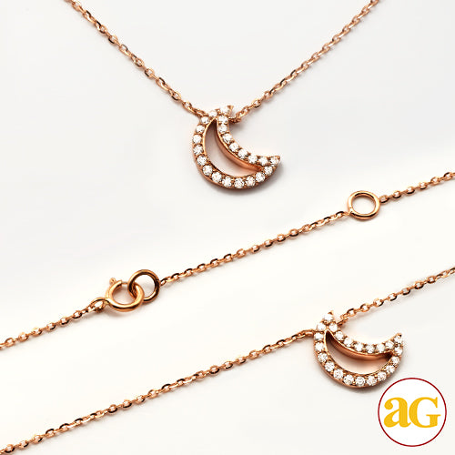 14KR 0.15CTW DIAMOND OPEN CRESCENT MOON NECKLACE