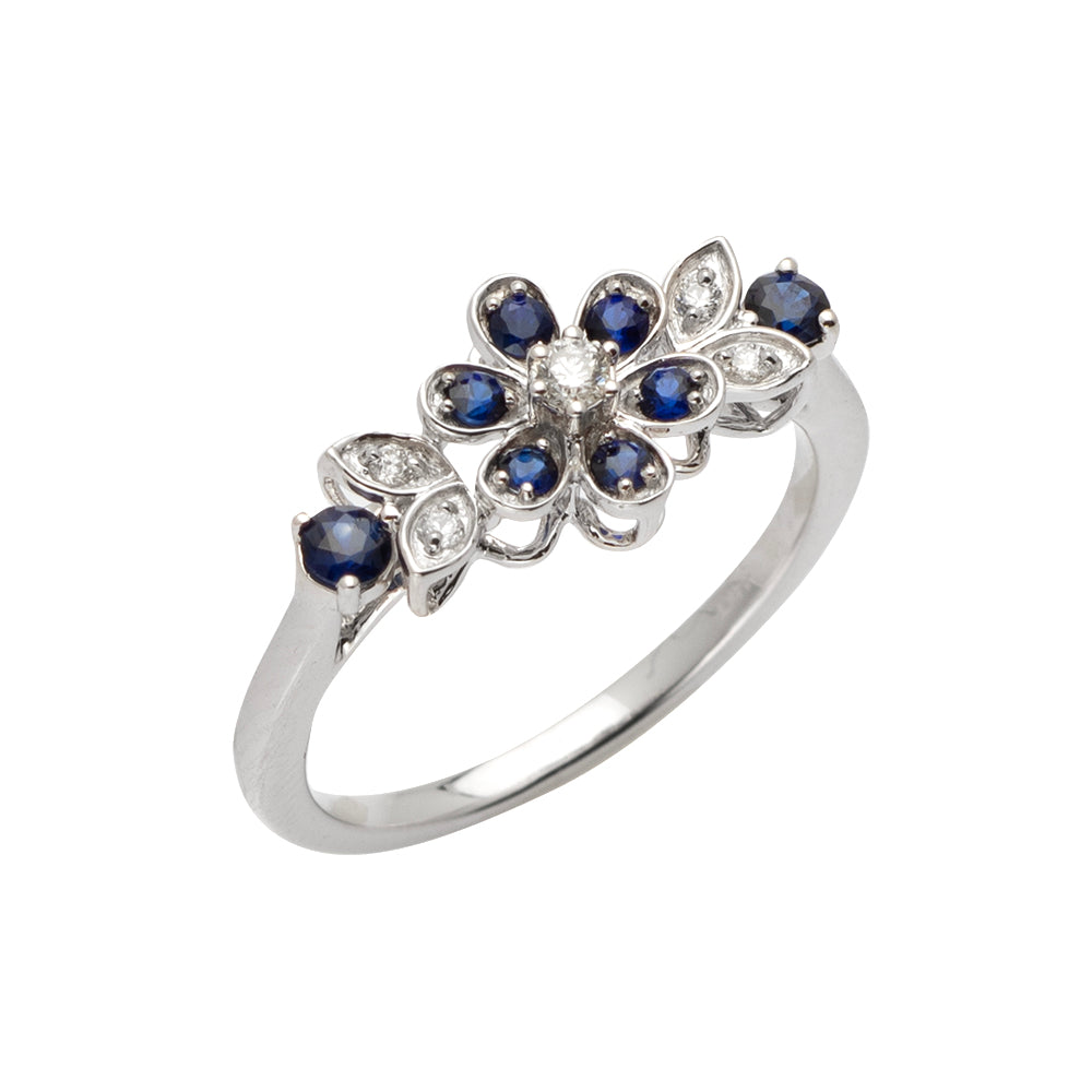 14KW 0.10CTW DIAMOND & SAPPHIRE FLOWER RING