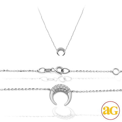 14KW 0.15CTW DIAMOND NECKLACE - FLAT CRESCENT