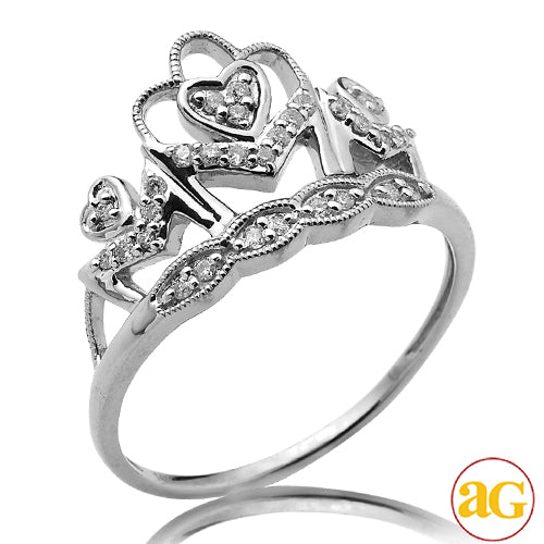 14KW 0.15CTW DIAMOND PRINCESS CROWN RING