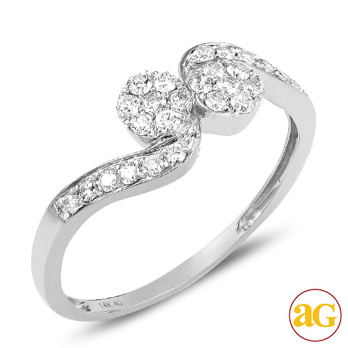 14KW 0.35CTW DIAMOND TWO STONE FLOWER RING