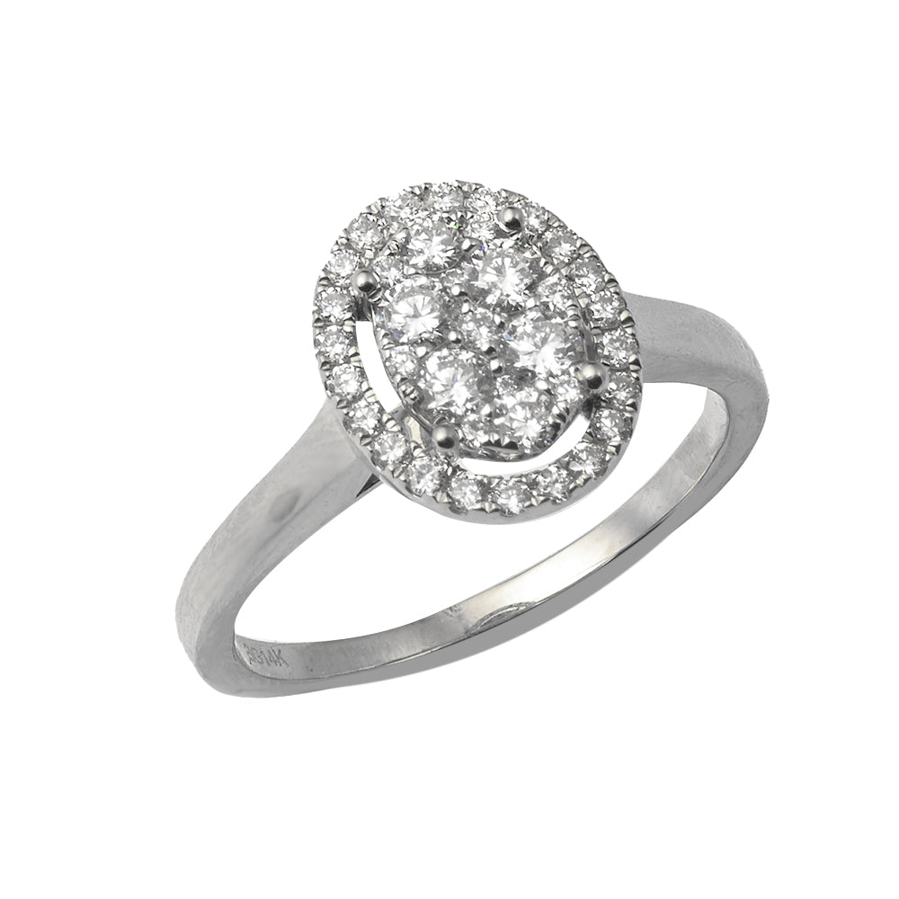 14KW 0.55CTW DIAMOND OVAL CLUSTER RING WITH HALO