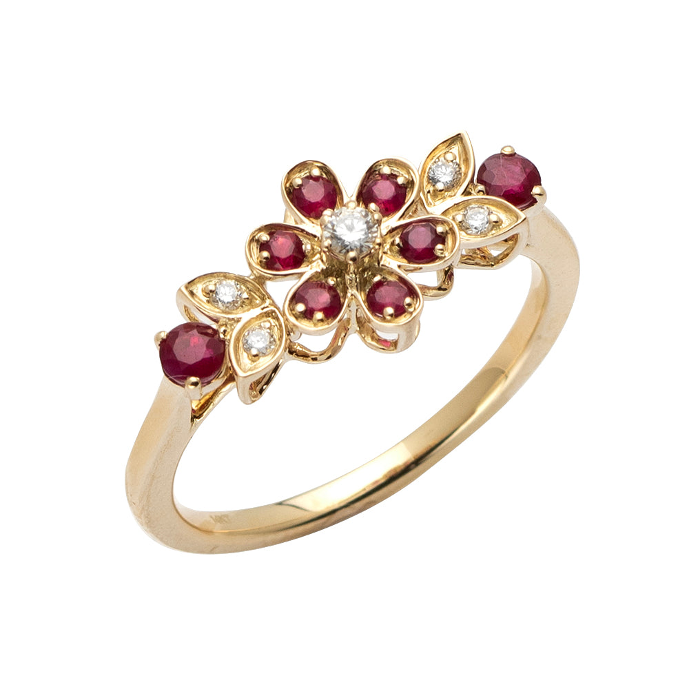 14KY 0.10CTW DIAMOND & RUBY FLOWER RING