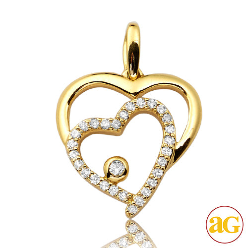 14KY 0.15CTW DIAMOND DOUBLE HEART PENDANT