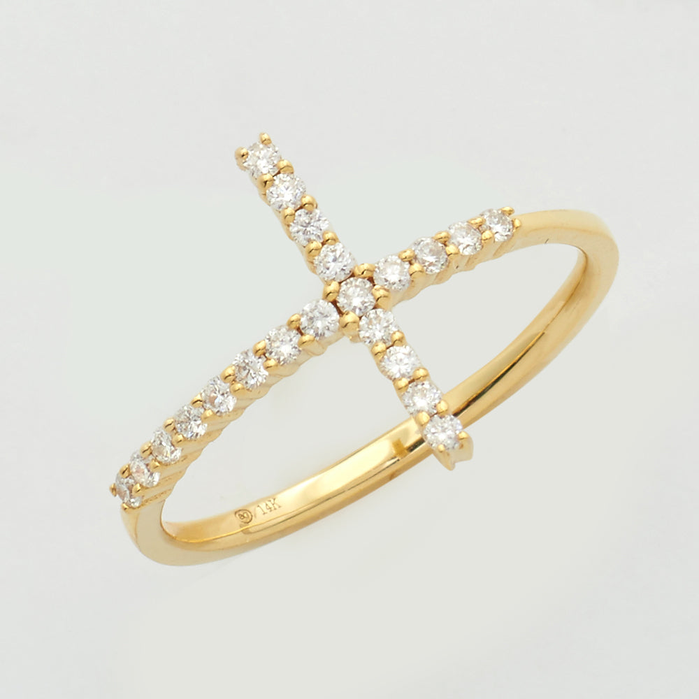 14KY 0.25CTW DIAMOND PRONG SET SIDEWAYS CROSS RING