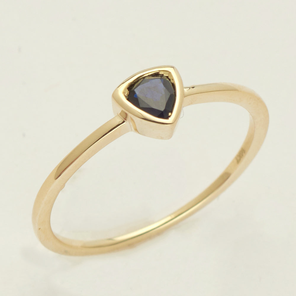 14KY 0.34CT BEZEL SET SAPPHIRE RING - TRIANGLE