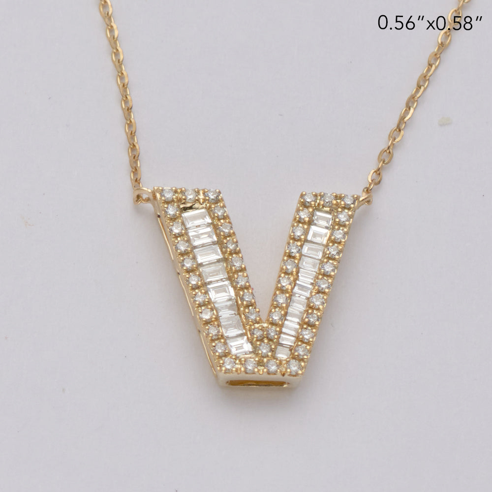 14KY 0.40CTW BAGUETTE DIAMOND ALPHABET NECKLACE