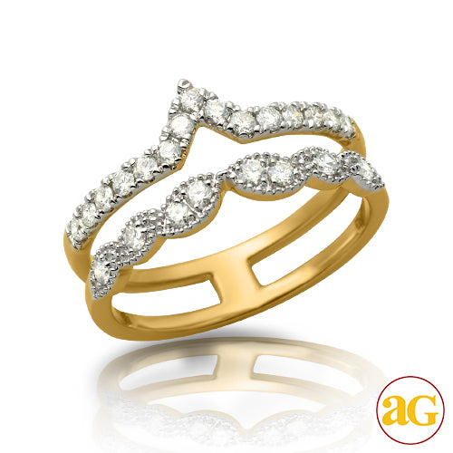14KYW 0.50CTW DIAMOND 2-ROW PRINCESS CROWN RING