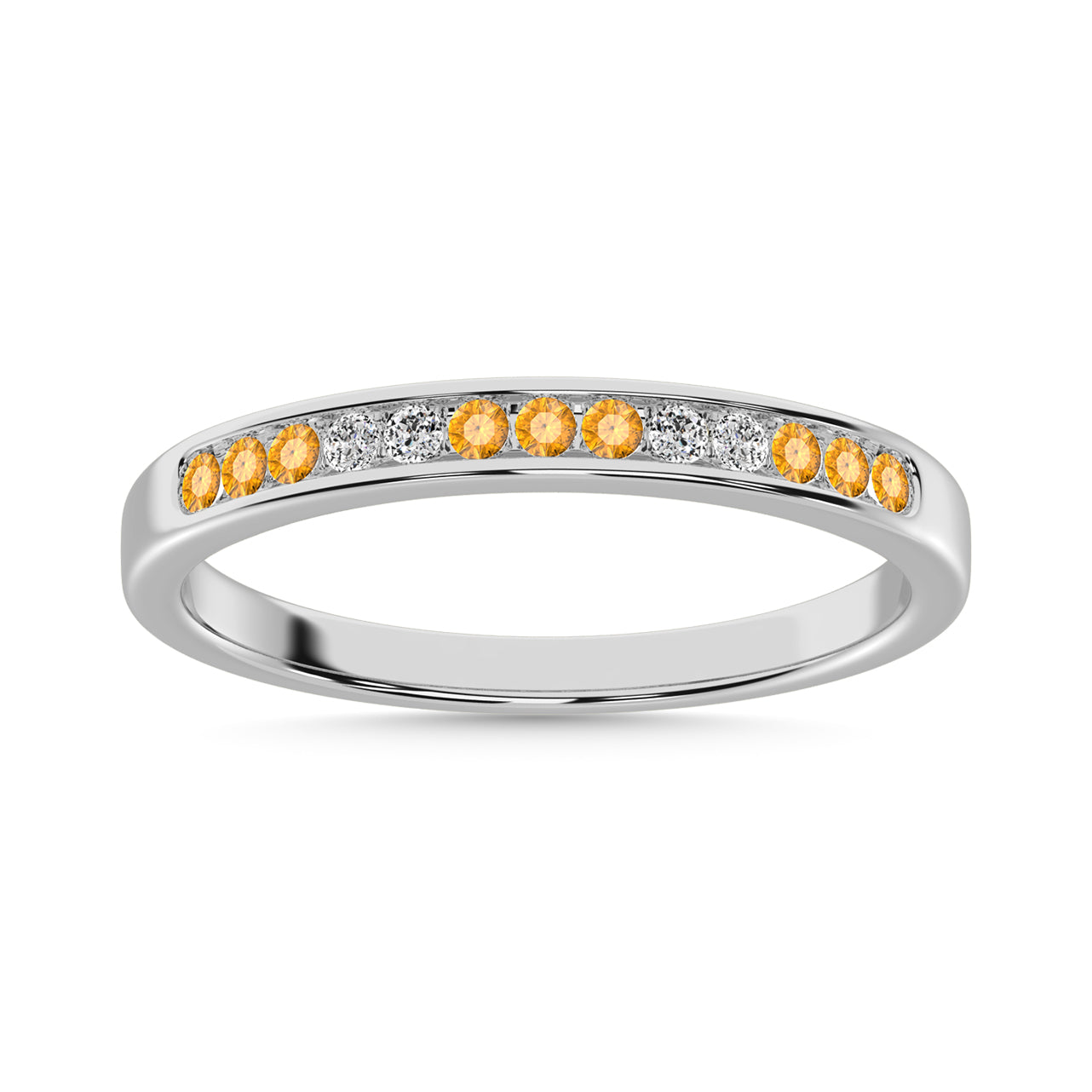 Citrine and Alternate Diamond 1/4 Ct.Tw. Ladies Machine Band in 14K White Gold