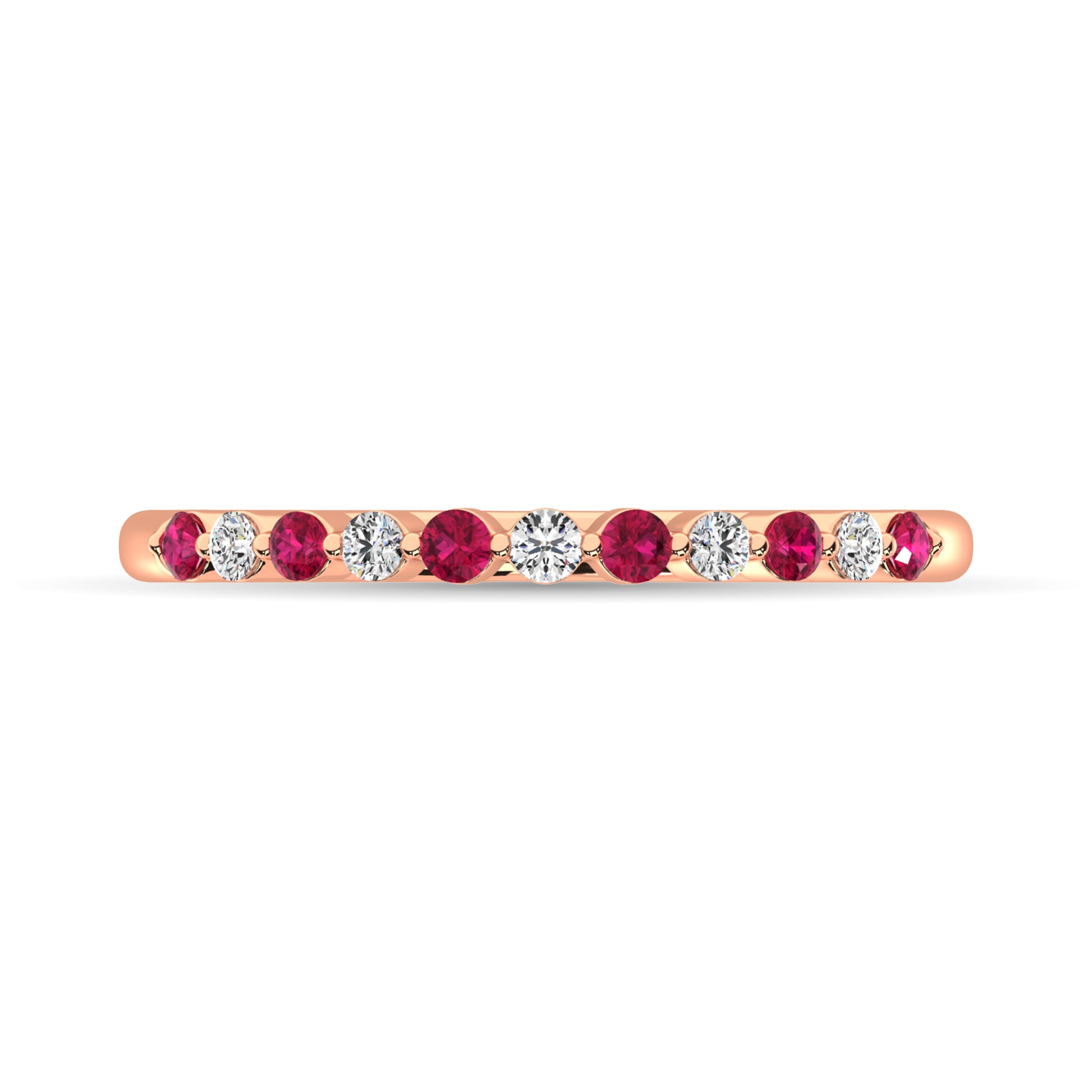 Diamond 1/4 Ct.Tw. And Ruby Stack Band in 10K Rose Gold ( 5 Diamond and 6 Ruby )