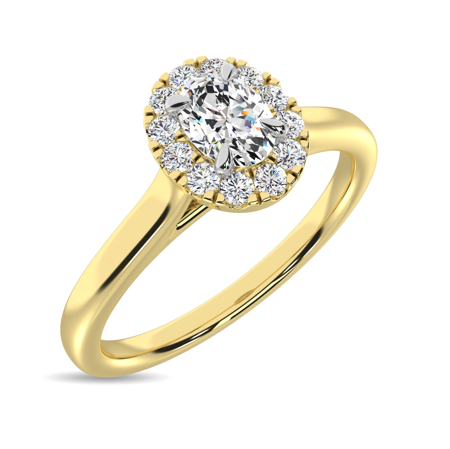 Diamond 3/8 Ct.Tw. Oval Center Halo Engagement Ring in 10K Yellow Gold