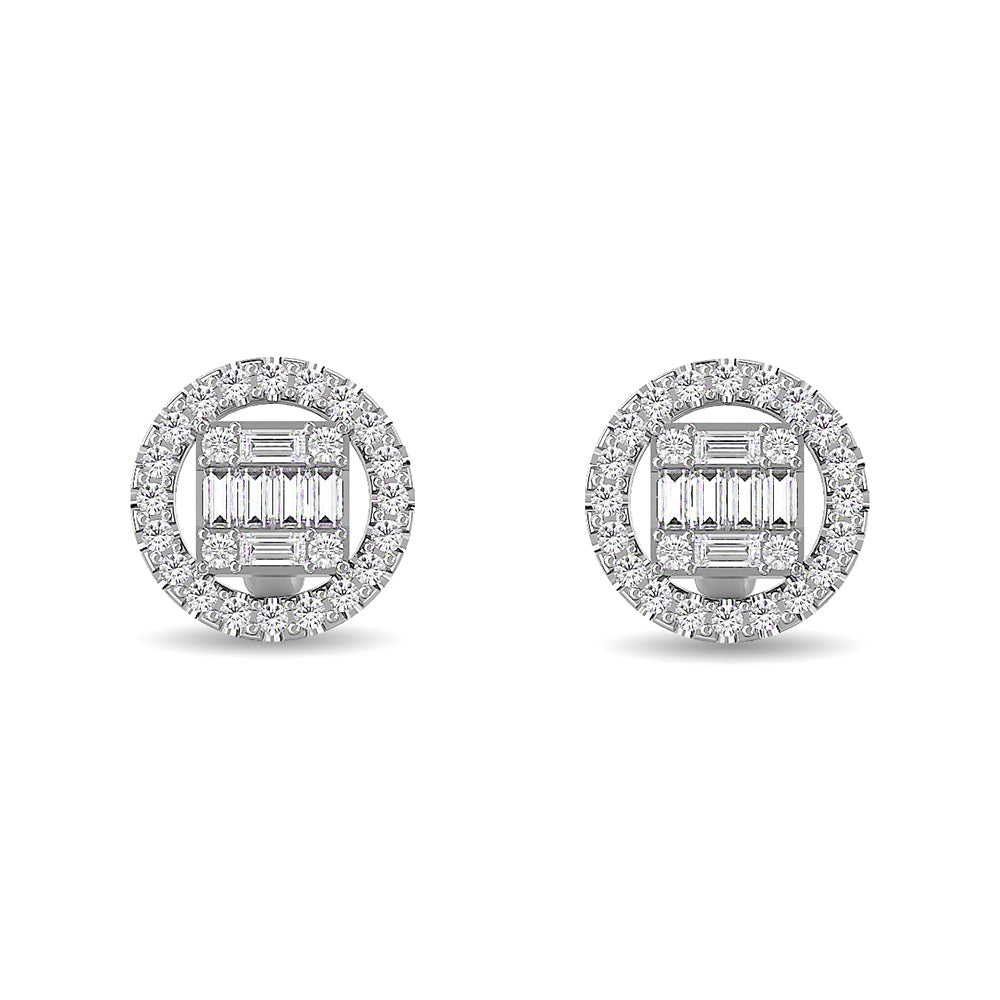 Diamond 3/8 Ct.Tw. Round and Baguette Fashion Earrings in 14K White Gold