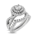 Diamond Twist Shank Double Halo Bridal Ring 3/4 ct tw Round Cut in 14K White Gold