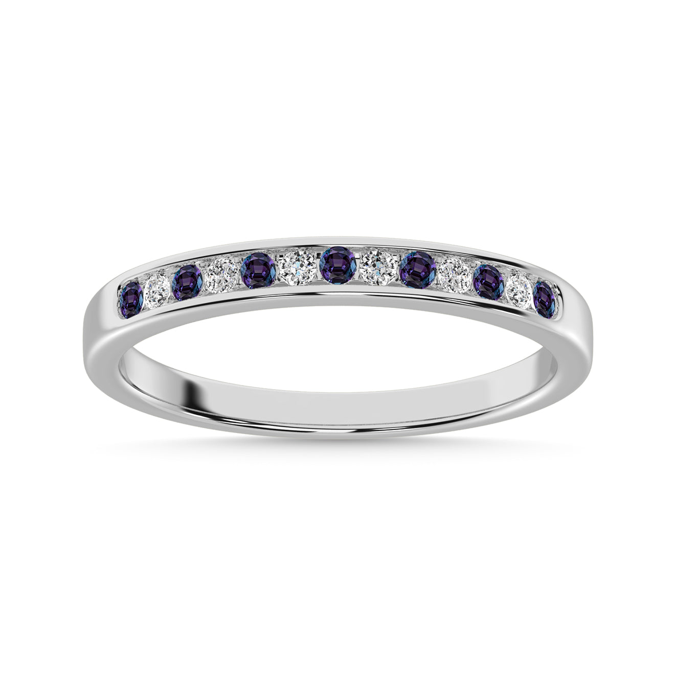 Synthetic Alexedrite and Alternate Diamond 1/5 Ct.Tw. Ladies Machine Band in 14K White Gold